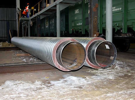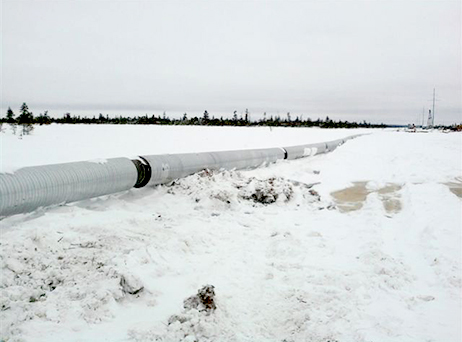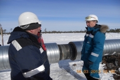 Строительство продуктопровода для ШФЛУ Пуровская ЗПК – Южно-Балыкская ГНС в заболоченной местности. Использовалась стальная труба Ø530х9 мм с бетонным покрытием и арматурным каркасом толщиной 65 мм в защитной стальной оцинкованной оболочке. Метод строительства: укладка с бермы, протаскивание.